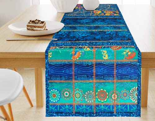 - Embellish fabric with a chain/cover stitch and cut into squares